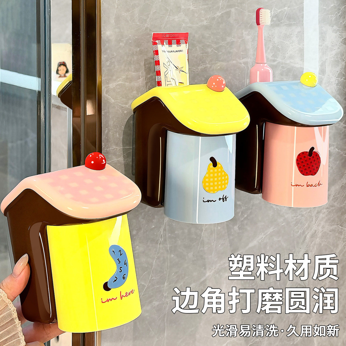 免打孔牙刷架 磁吸漱口杯牙刷杯儿童牙刷置物架卫生间刷牙杯壁挂式由