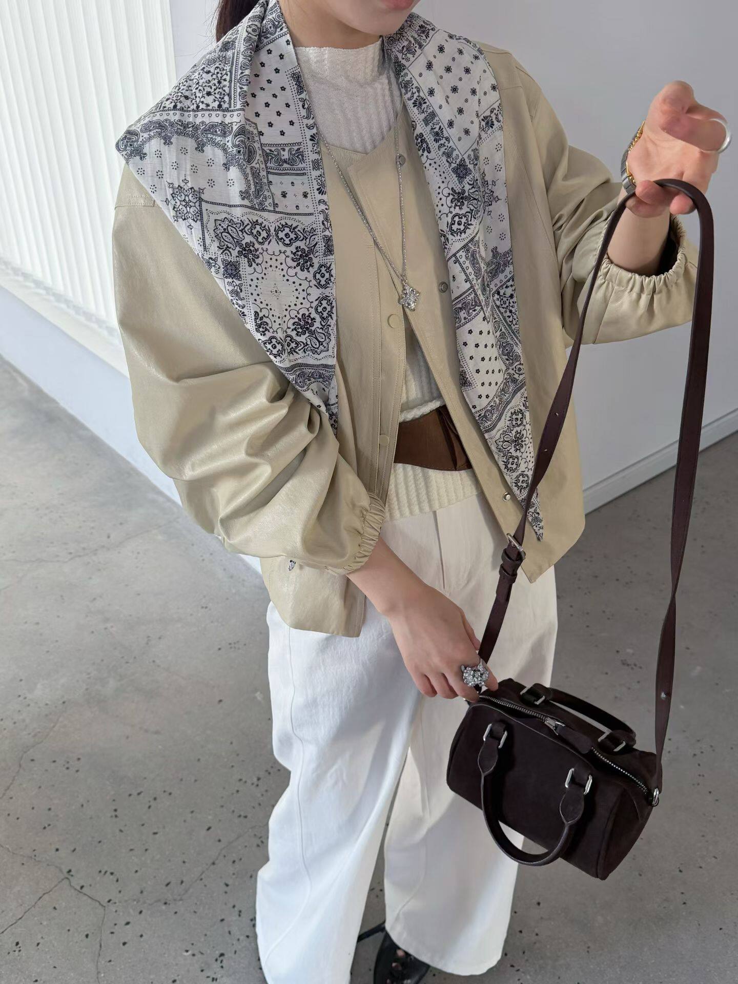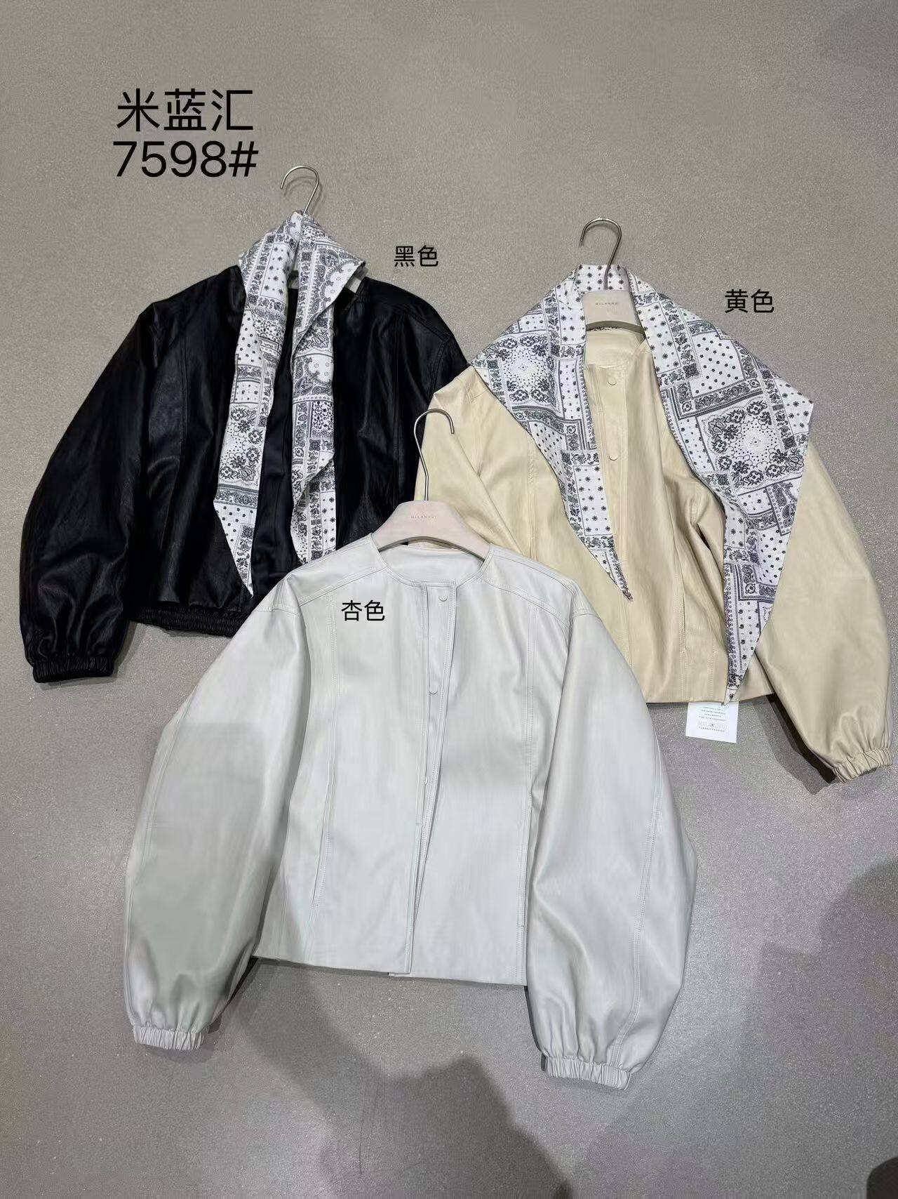 高级感圆领单排扣蛋白皮皮衣夹克外套配丝巾女 米蓝汇7598韩国时尚