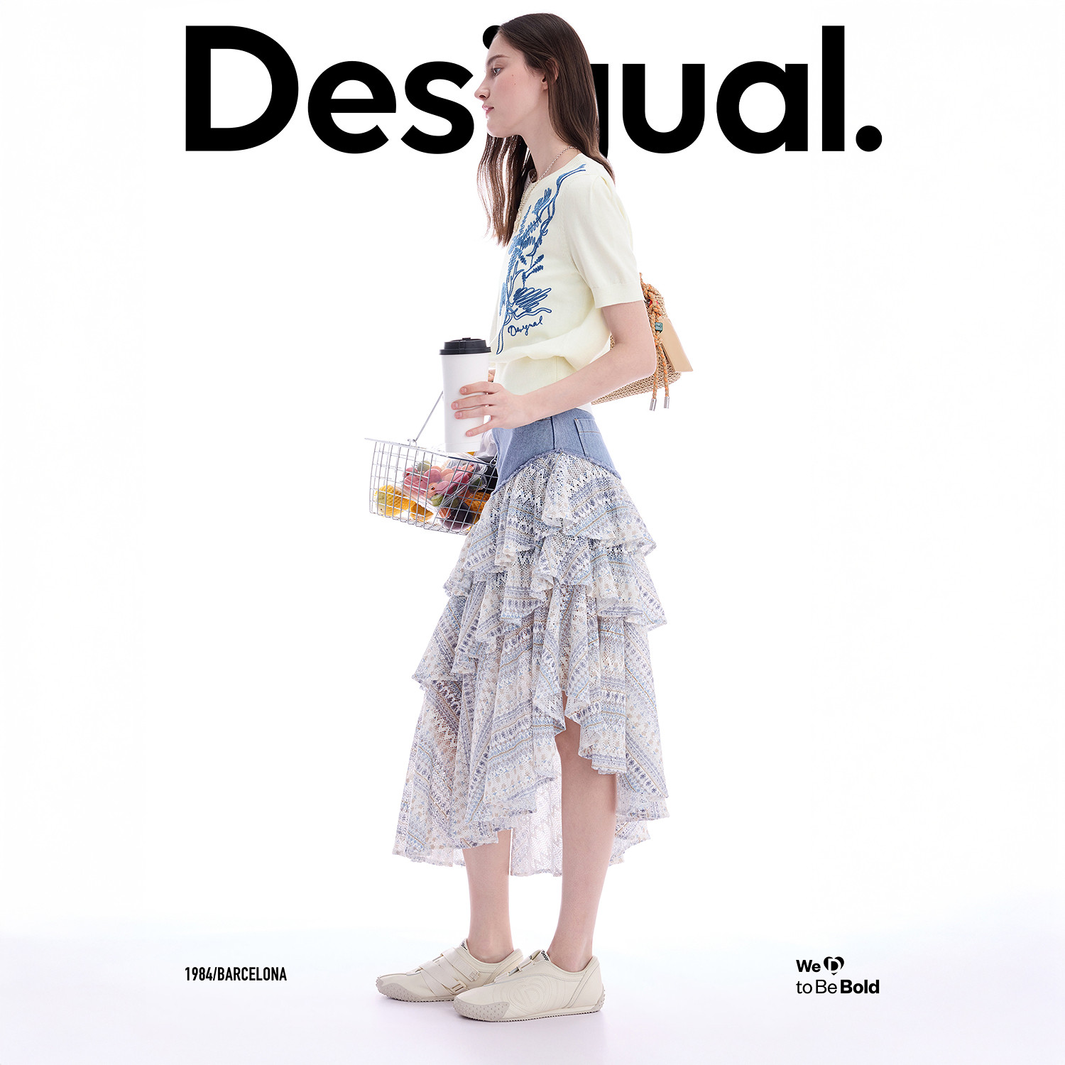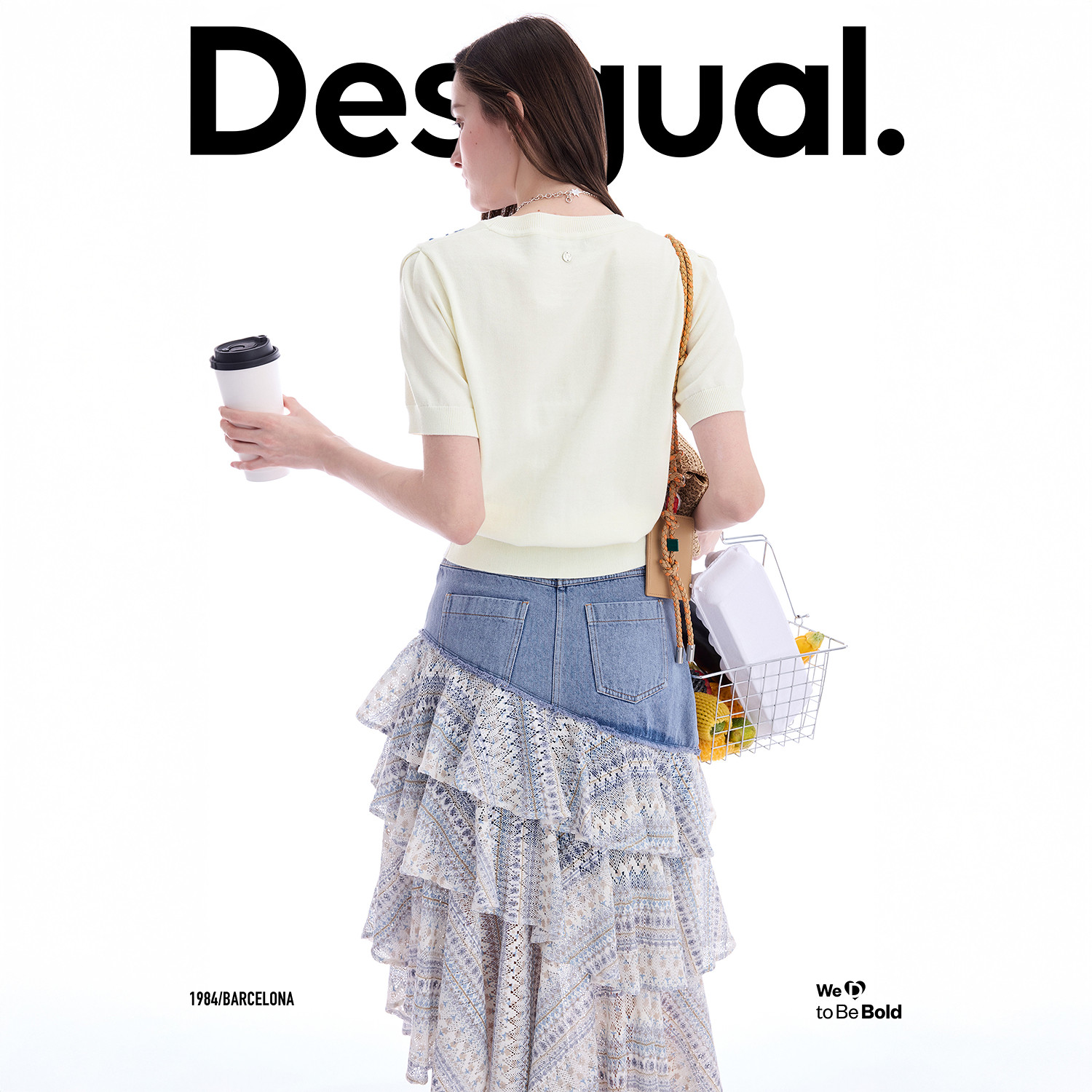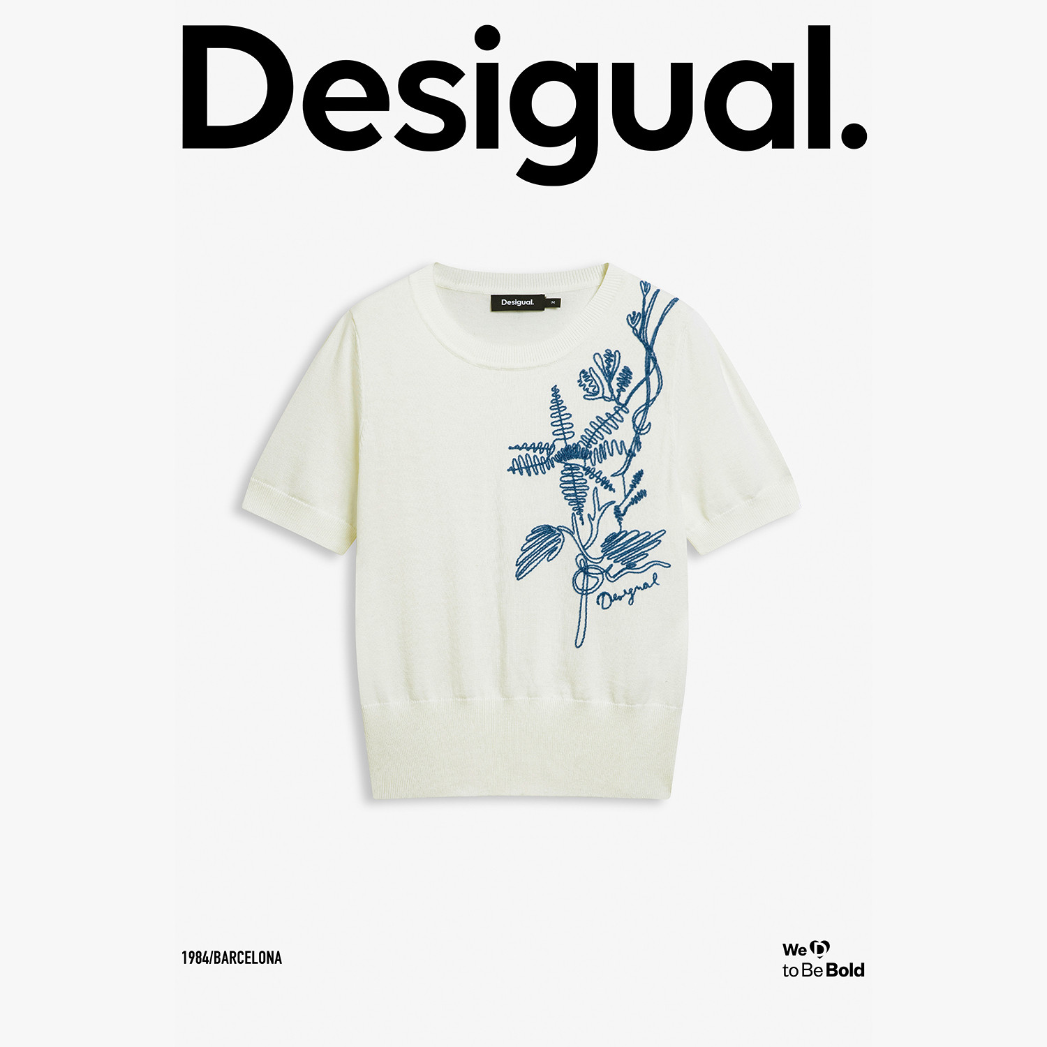 Desigual26春夏新品 女式 针织衫 撞色雪尼尔盘带绣花圆领短袖由