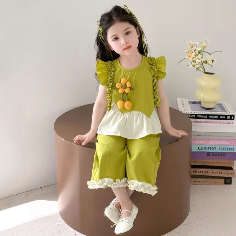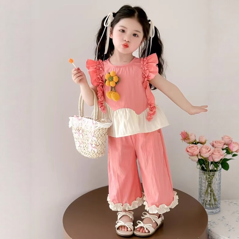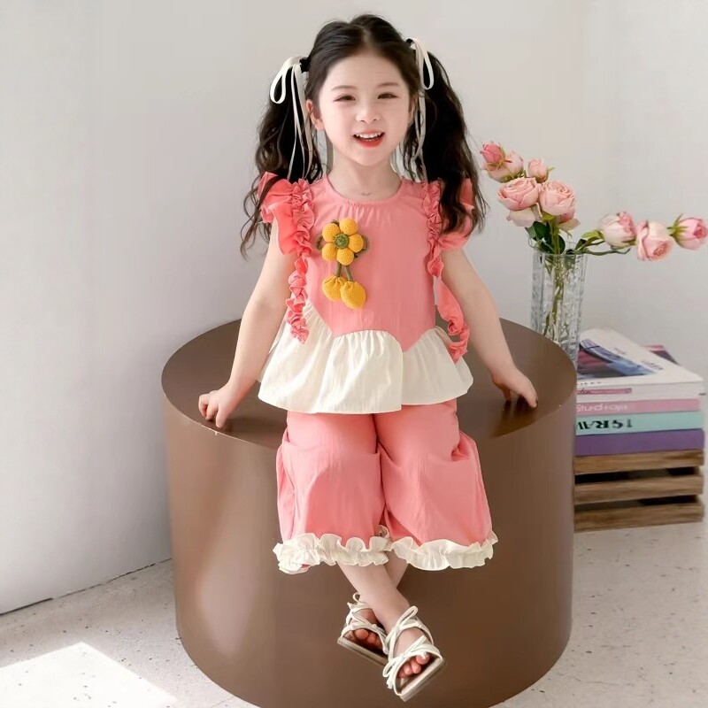 2026款 法国Uamtor女童夏装 飞袖 套装 花朵 洋气时髦两件套女宝宝薄款