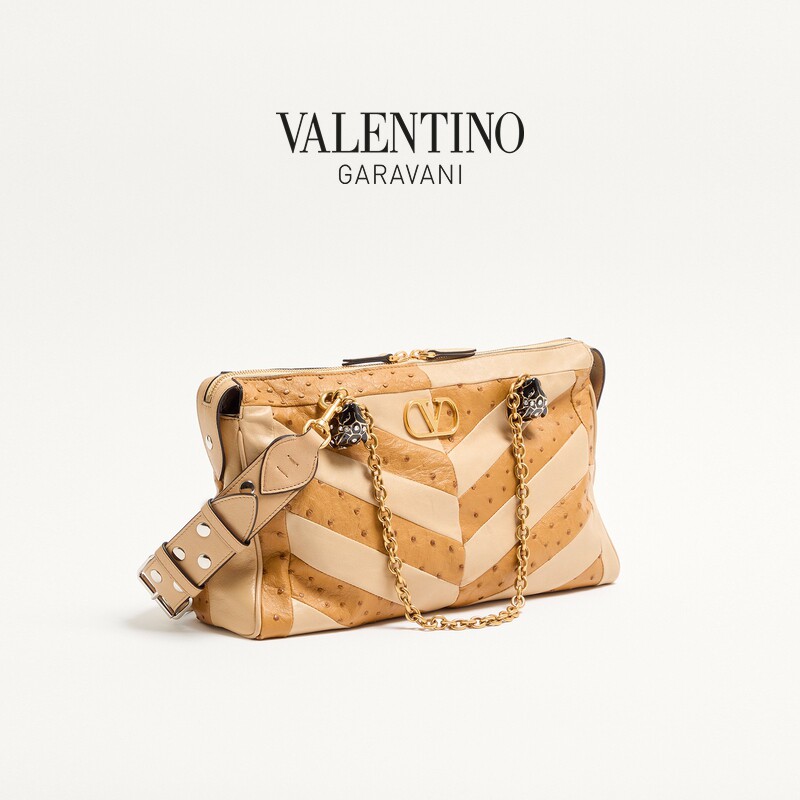 上市 华伦天奴VALENTINO女士PANTHEA鸵鸟皮革和羊皮革手袋 新品由