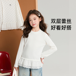 新款 布丁哈鲁春装 女童童装 上衣2026春季 T恤 儿童甜美蕾丝边长袖由