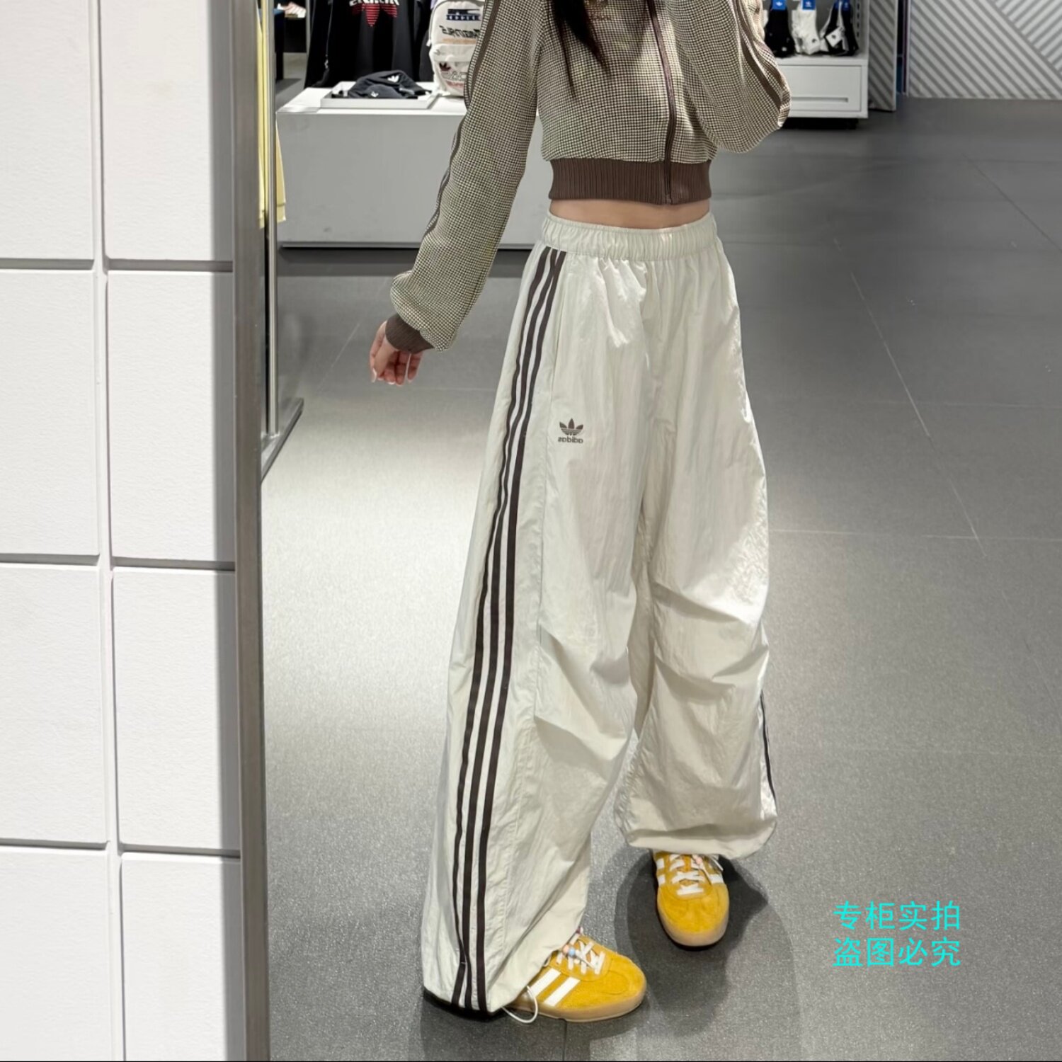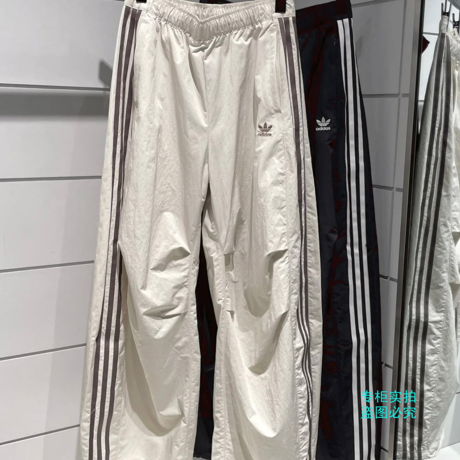 Adidas三叶草女子经典 运动长裤 KS3324 KS3325 条纹宽松阔腿伞兵裤由