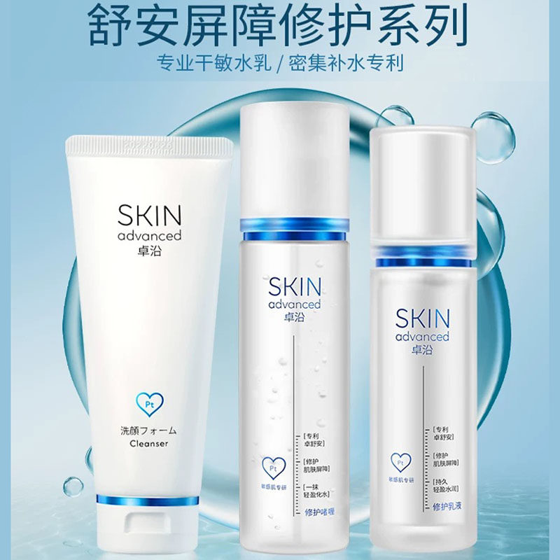 屈臣氏卓沿白金水乳套装 舒润水啫喱乳液洁面乳泡沫温和敏感肌正品