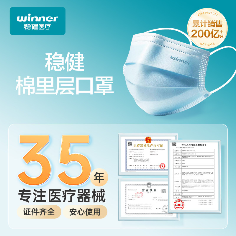 医疗官方旗舰店 稳健棉里层医用外科口罩成人儿童一次性非独立包装由