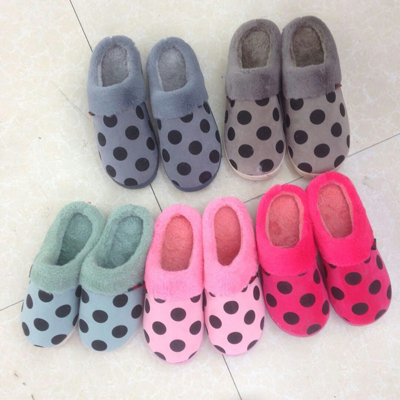 家居鞋 男女式 圆点棉拖鞋 冬季 室内防滑拖鞋 厚底包跟 清仓处理