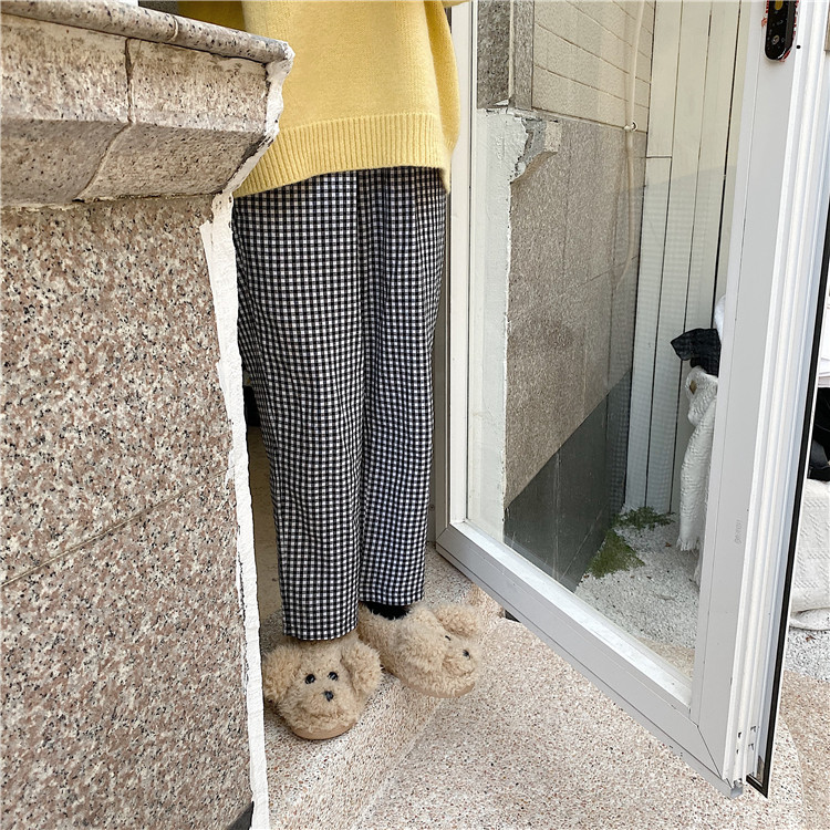 ins男女时尚 细细条 情侣棉拖鞋 可爱小狗冬季 百搭防滑居家月子棉鞋