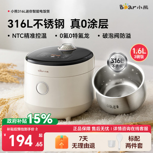 政府补贴小熊迷你电饭煲1到2人316L不锈钢0涂层内胆多功能电饭锅