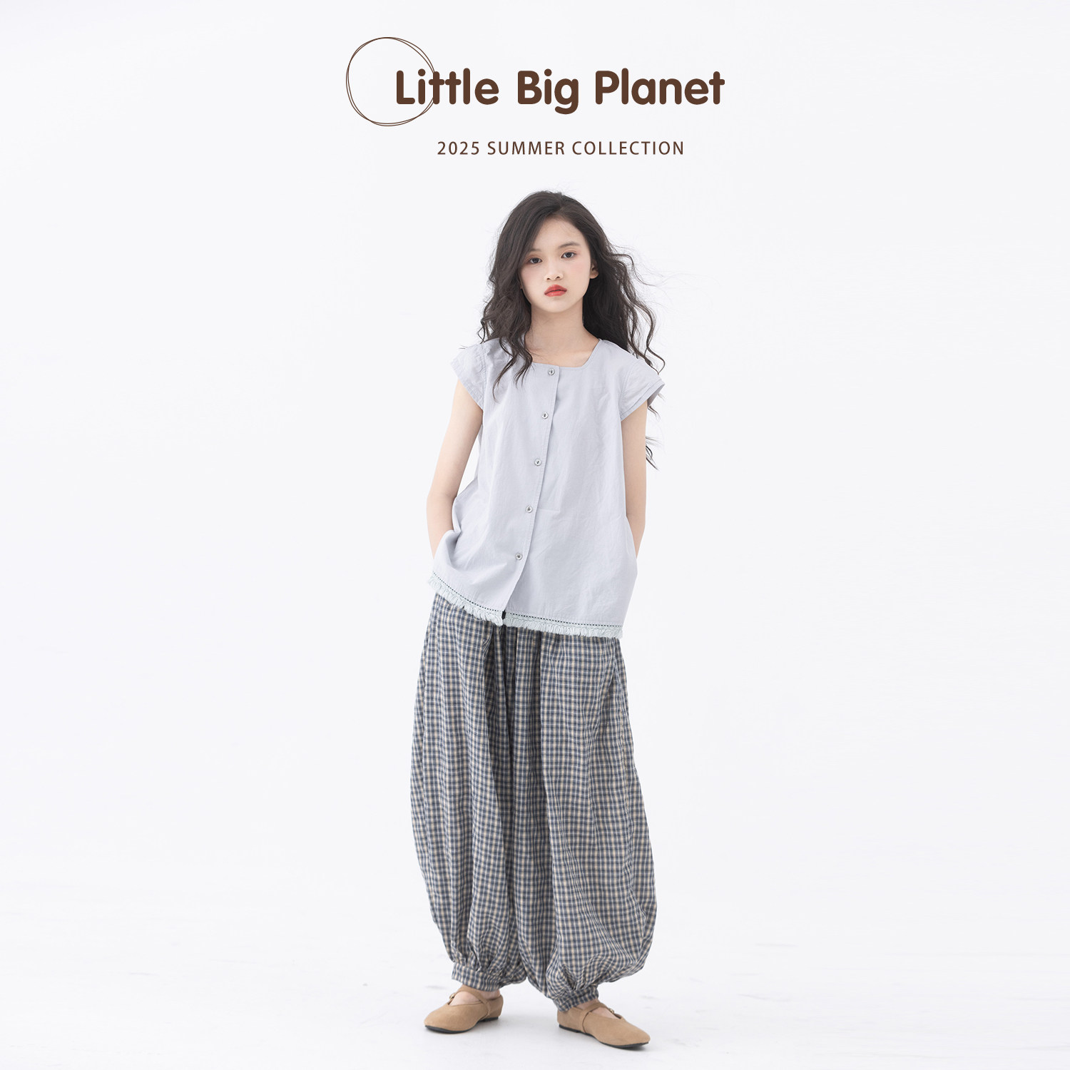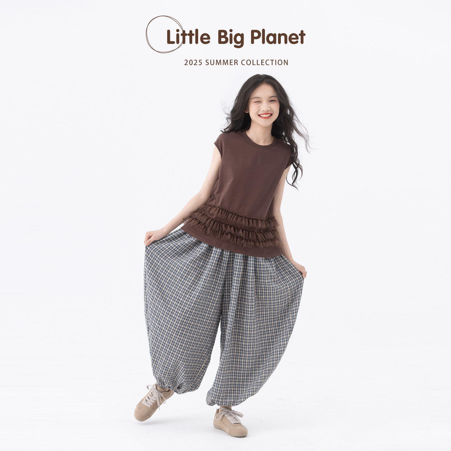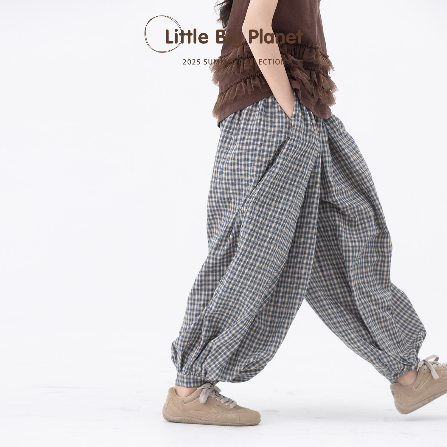 小小大星球童装 男女童夏季 轻薄大大空气裤 氧气感纯棉格纹灯笼裤