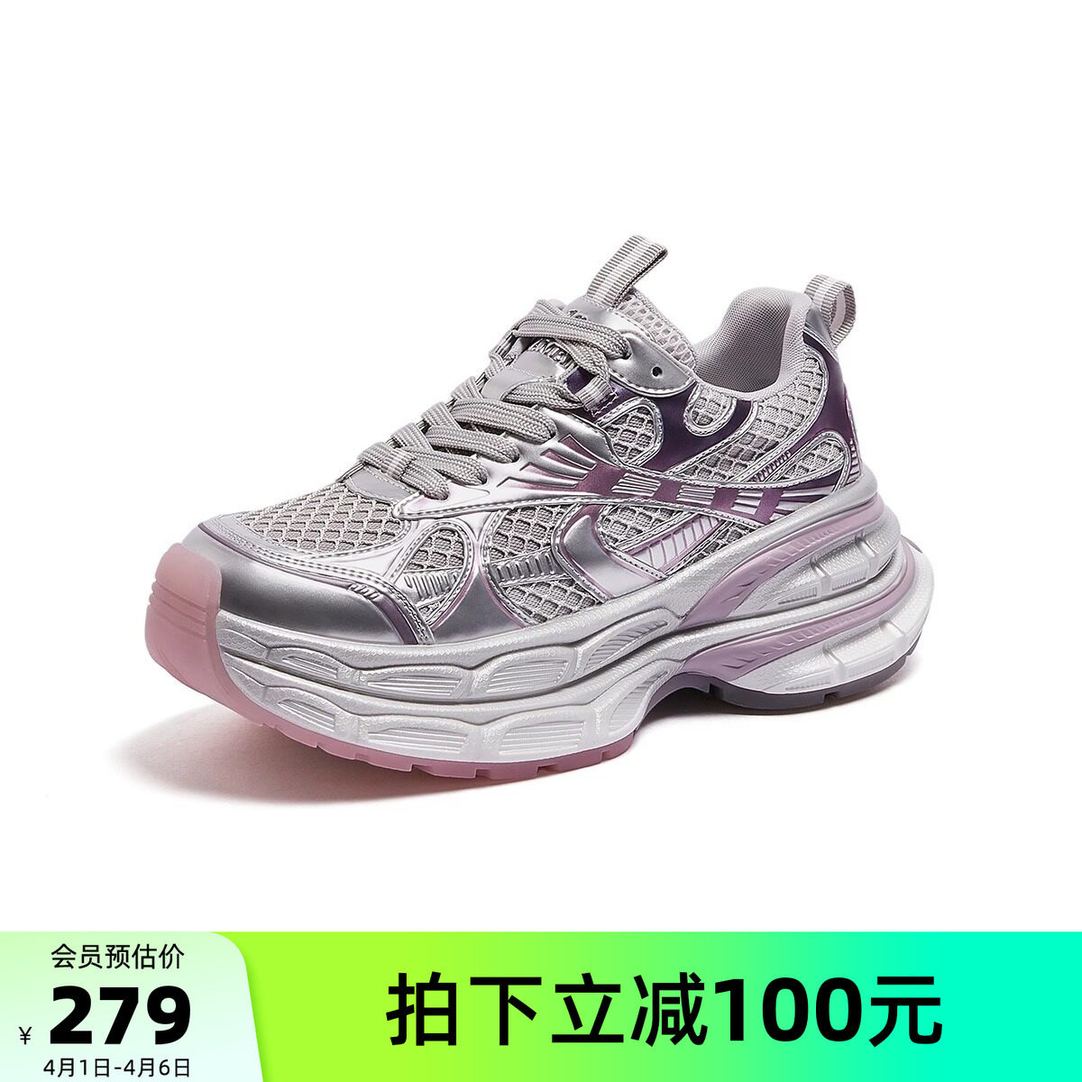 复古老爹鞋 新款 2026春季 子 银色透气运动鞋 厚底休闲鞋 女款 骆驼女鞋由