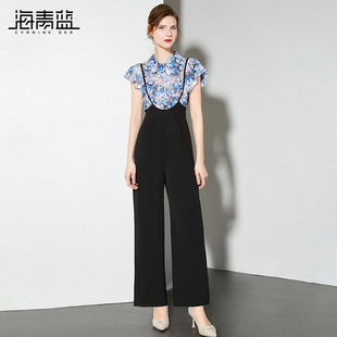 女2026年夏季 套装 短袖 两件套 气质女装 休闲裤 高级洋气时尚 海青蓝