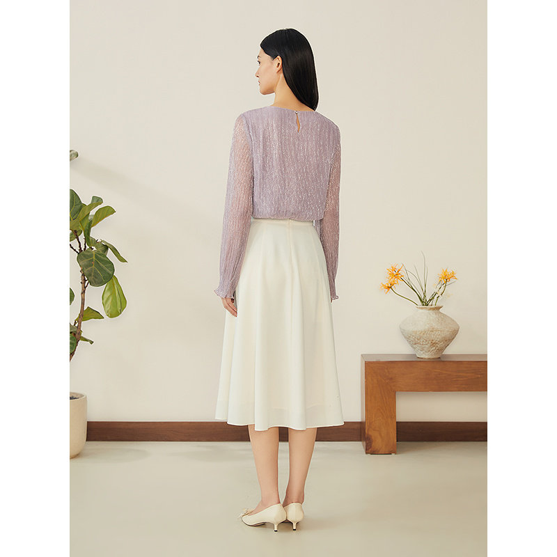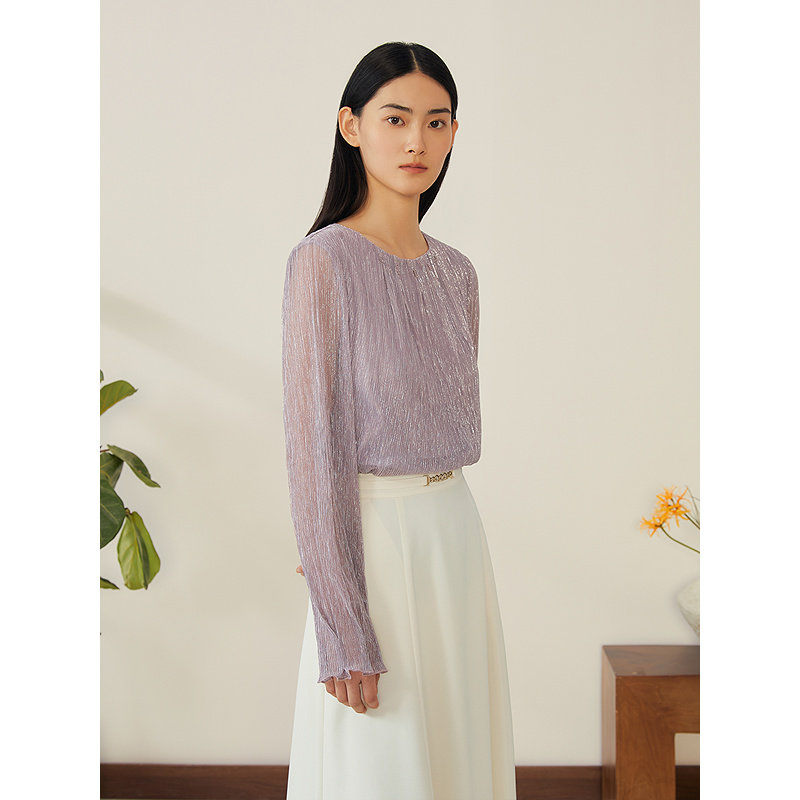 为您提供商品透视袖 YINER音儿专选2025春季 新款 法式 女上衣 拼接亮丝打底衫的详细介绍,