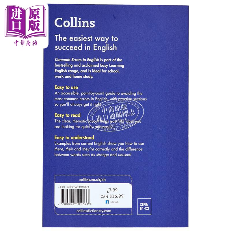 ⭐小红书推荐⭐Common Easy Learning 中商原版 Collins 第2版 Errors 英文原版 柯林斯易学英语 Second English 常见英文错误 edition,所属进口教材/考试类/工具书类原版书分类,由淘宝网挑选推荐!小红书抖音网红同款!哪里有卖Common Easy Learning 中商原版 Collins 第2版 Errors 英文原版 柯林斯易学英语 Second English 常见英文错误 edition和多少钱质量怎么样✅。
