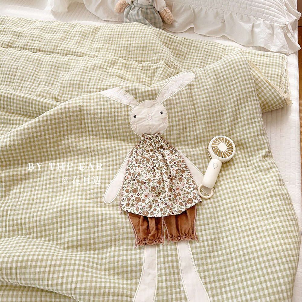 可爱兔全棉双层纱夏被卡通贴布绣纯棉纱布空调被子春秋被芯夏凉被由