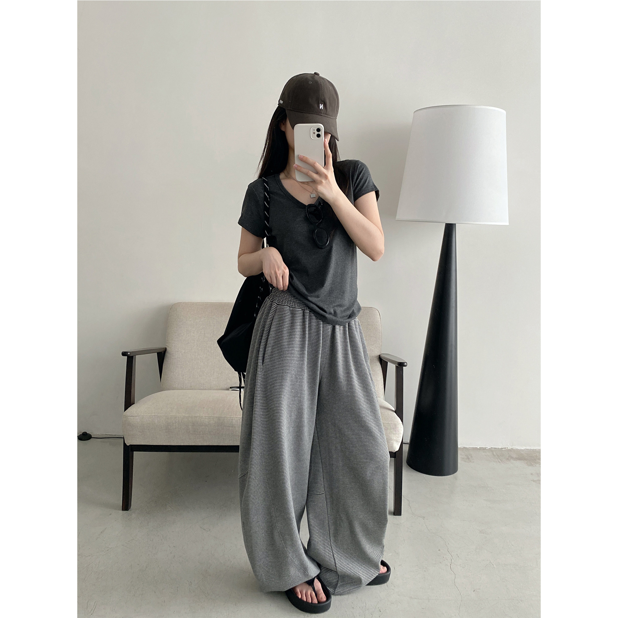 为您提供商品抽绳显瘦长裤 sun柚 立体分割解构宽松阔腿裤 条纹运动裤 女夏 休闲裤的详细介绍,