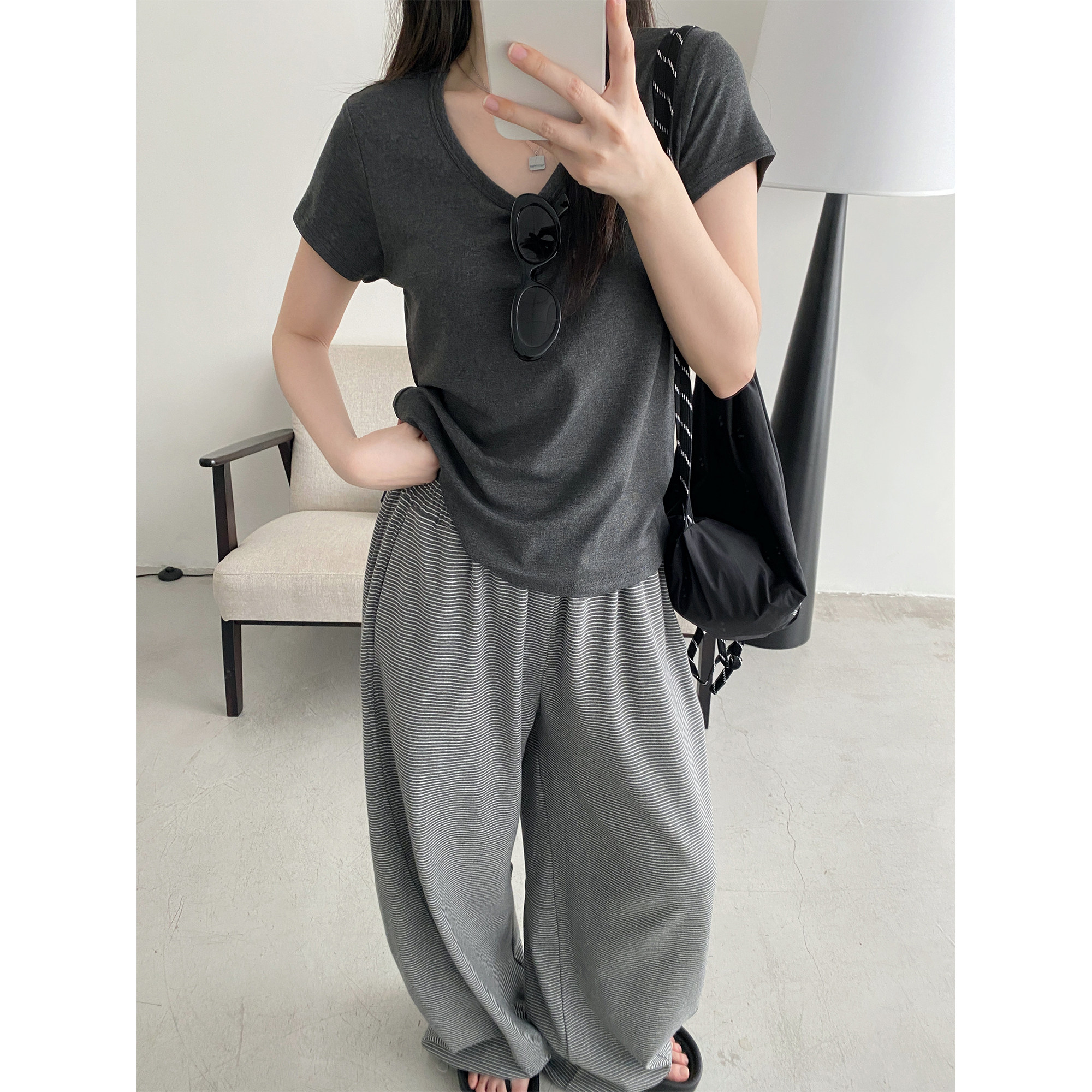 asomesome美式 女灰色修身 休闲松弛运动裤 子 黑色微喇直筒低腰卫裤