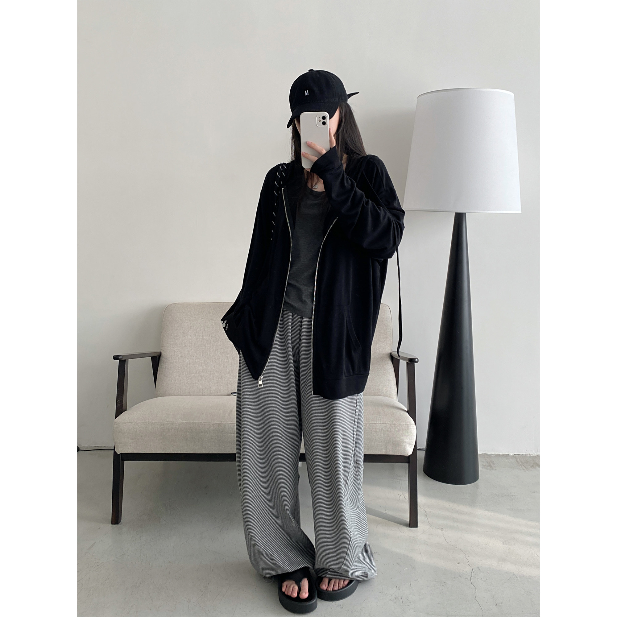 抽绳显瘦长裤 sun柚 立体分割解构宽松阔腿裤 条纹运动裤 女夏 休闲裤
