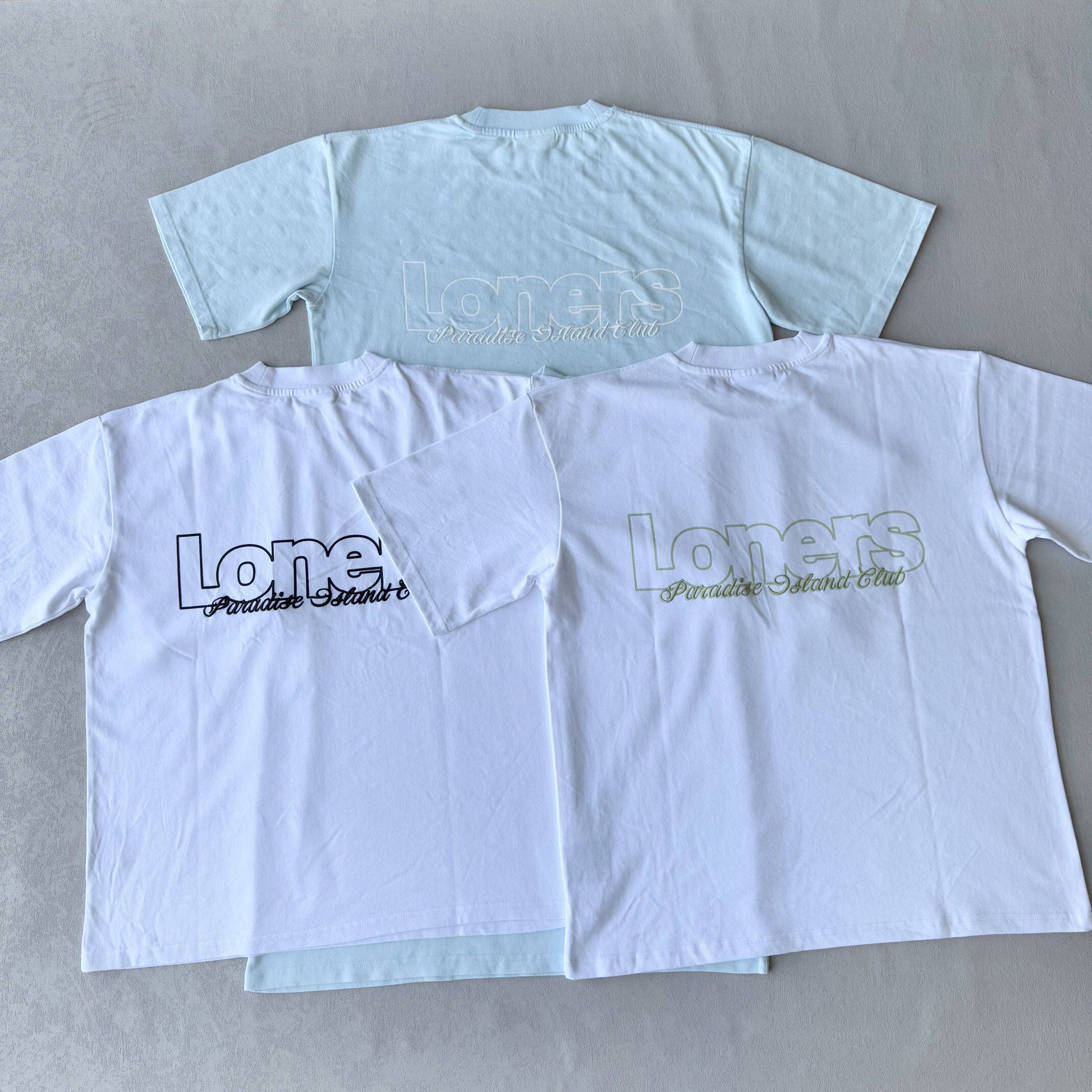 LA短袖 宽松百搭印花上衣白色11 T恤男女情侣落肩袖