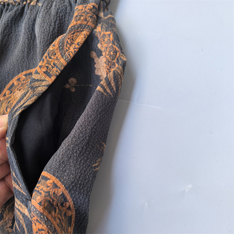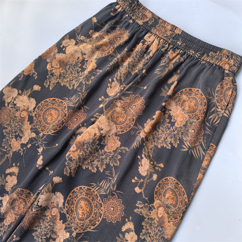 桑蚕丝口袋长裤 新款 阔腿高端莨绸 100真丝香云纱珍珠缎休闲裤 女裤