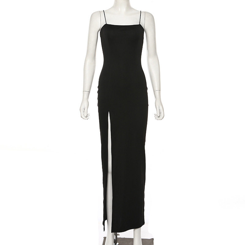 slit dress 高开叉低胸红色吊带长裙 high red halter cut low