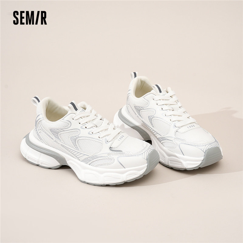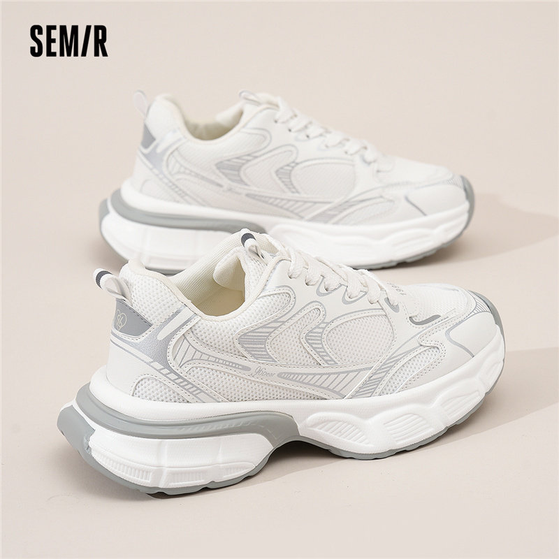 Semir官方正品 2025春夏新款 增高透气运动休闲鞋 女 银色厚底老爹鞋由