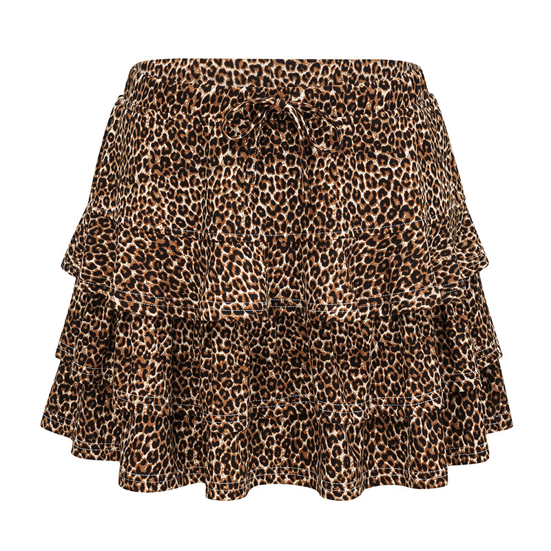 自制欧美风豹纹蛋糕裙高腰a字半身裙女夏短裙防走光 Girl
