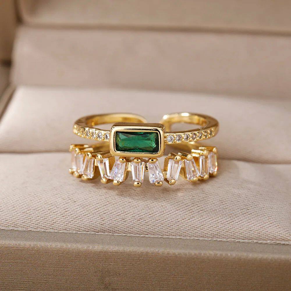 Double Women Classic Irregular Rings For Zircon Green Layer