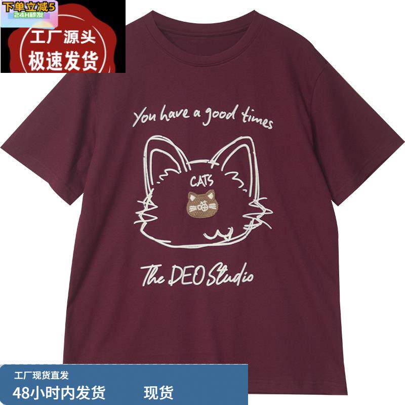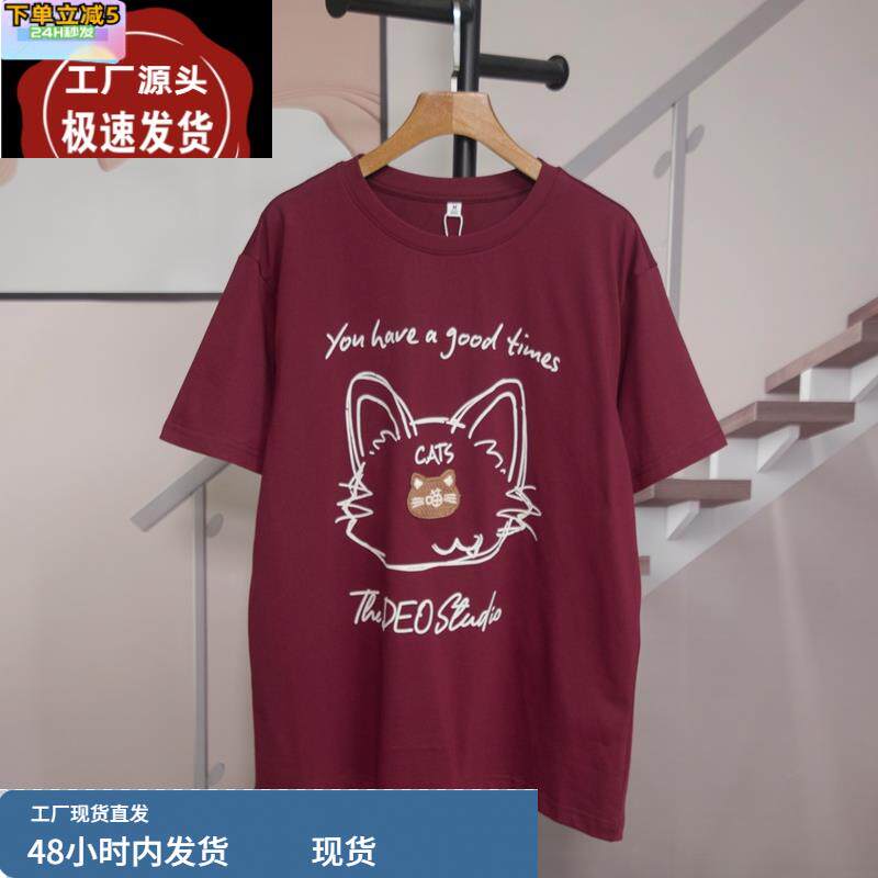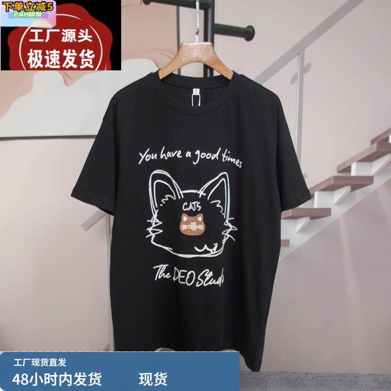 新款 时尚 宽松短袖 T恤女2025夏季 百搭显瘦猫咪印花上衣潮7188 韩版