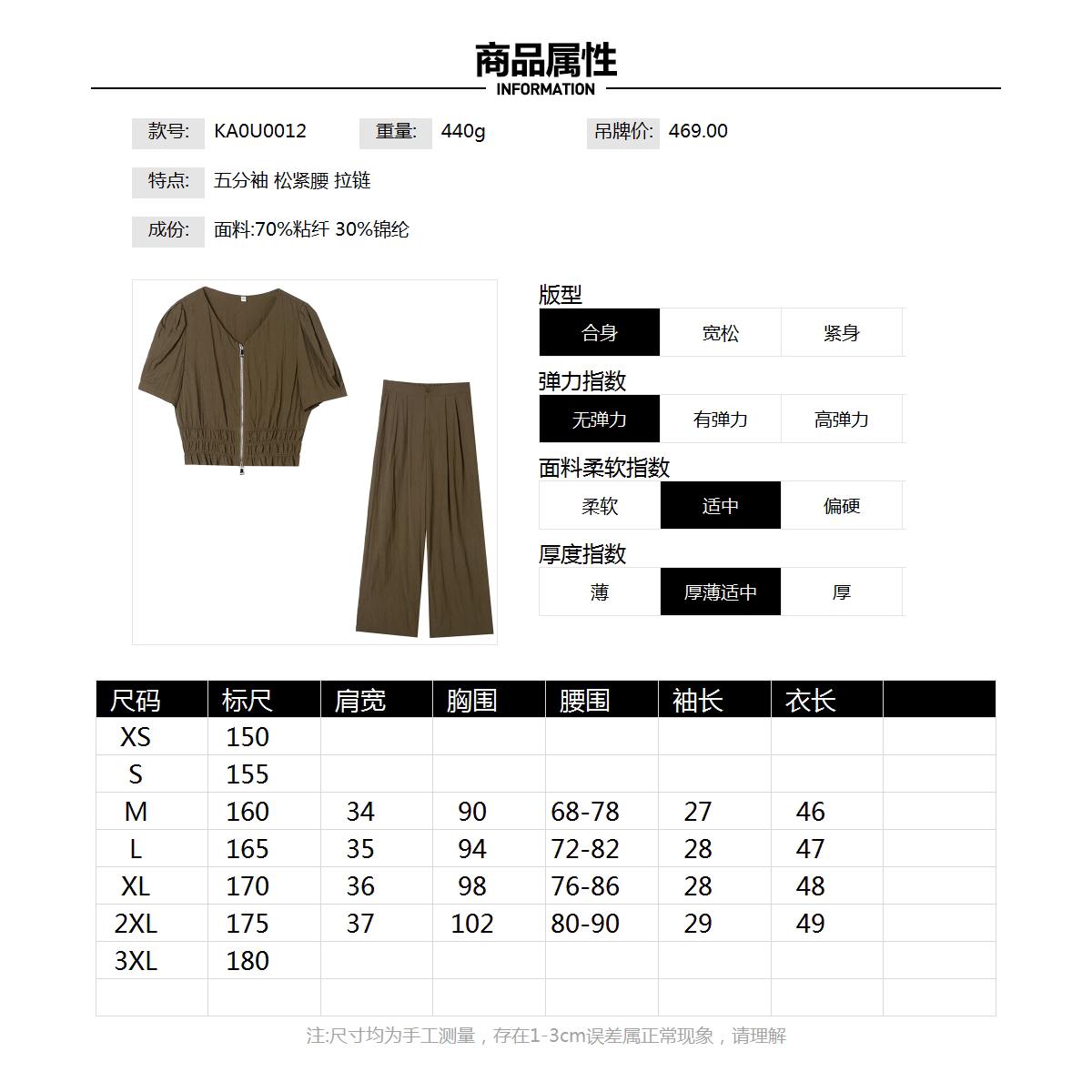 为您提供商品松紧腰五分袖 新款 KA夏装 女 阔腿裤 两件套装 上衣 Outlets撤柜正品的详细介绍,