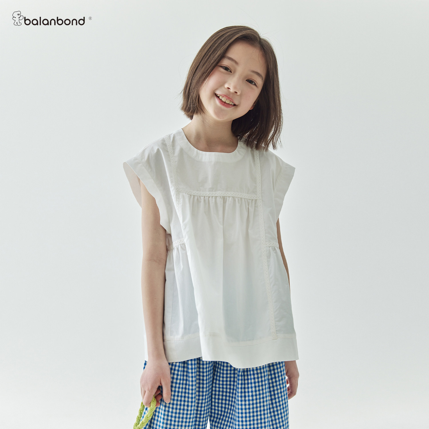 2026春夏新品 蕾丝花边飞飞袖 上衣俏皮甜美纯白衬衫 纯棉 女童法式由