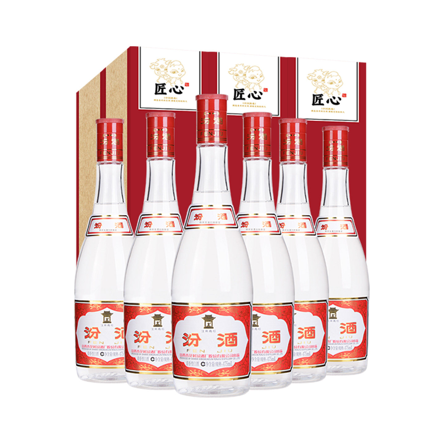 山西杏花村汾酒42度红盖汾475ml 6瓶纯粮食低度口粮白酒礼盒装