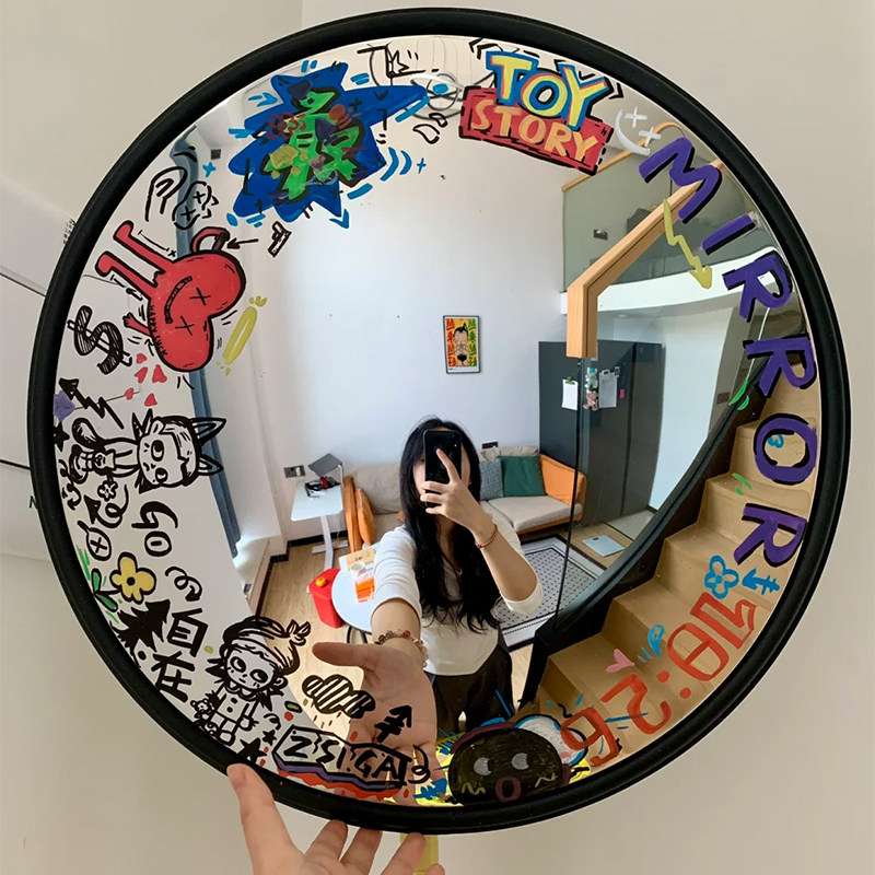 哈哈镜ins风室内凹凸镜diy涂鸦广角镜家居装 饰摆件 出片新道具由