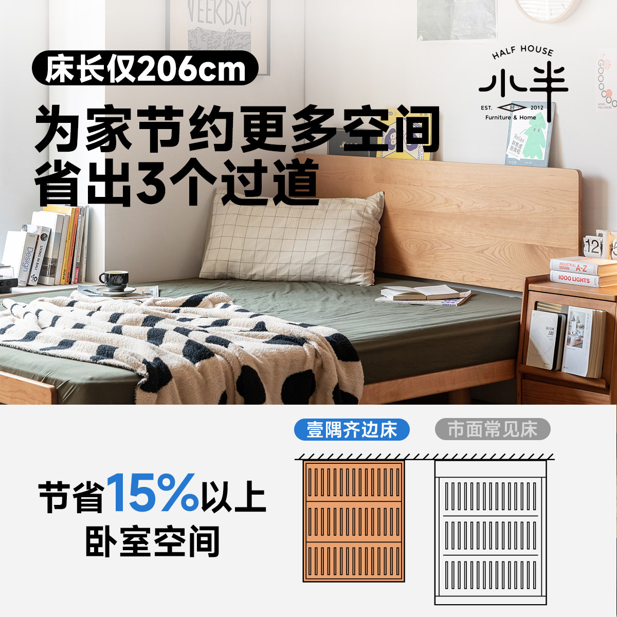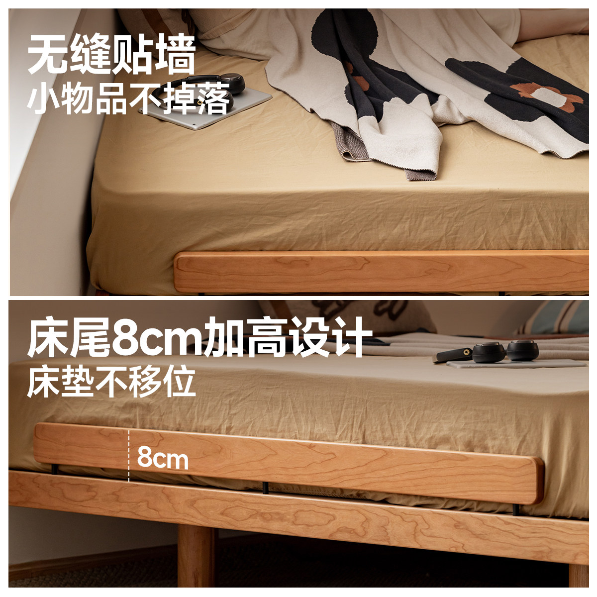 出乎生活家具壹隅樱桃木实木齐边床小户型1米8双人床主卧北欧日式由