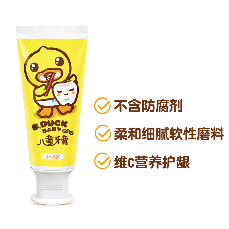 为您提供商品B.duck小黄鸭儿童牙膏含氟固齿防龋齿宝宝牙刷软毛学生牙刷架套装的详细介绍,