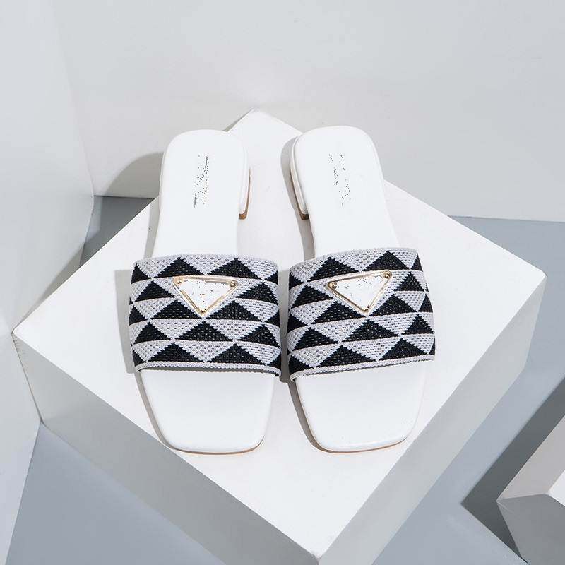 2023欧美刺绣休闲低跟格子拖鞋 Sandals Women Slippers 女Summer