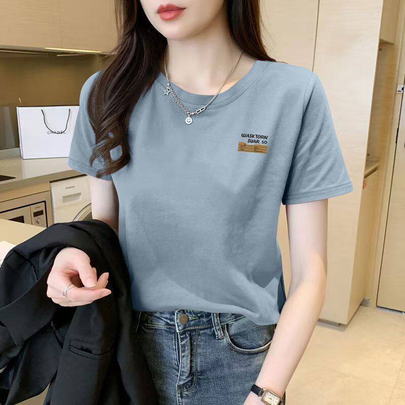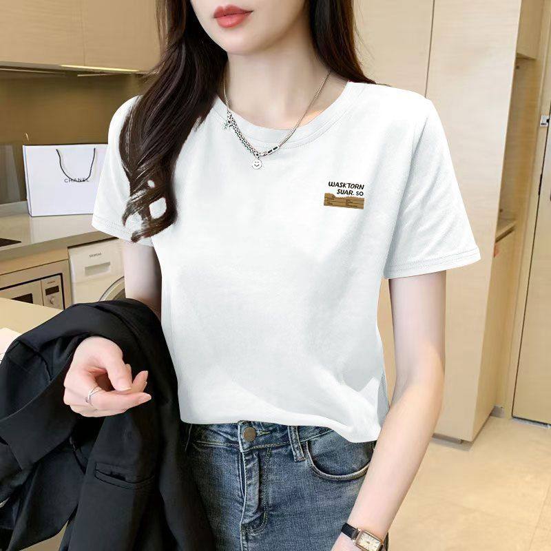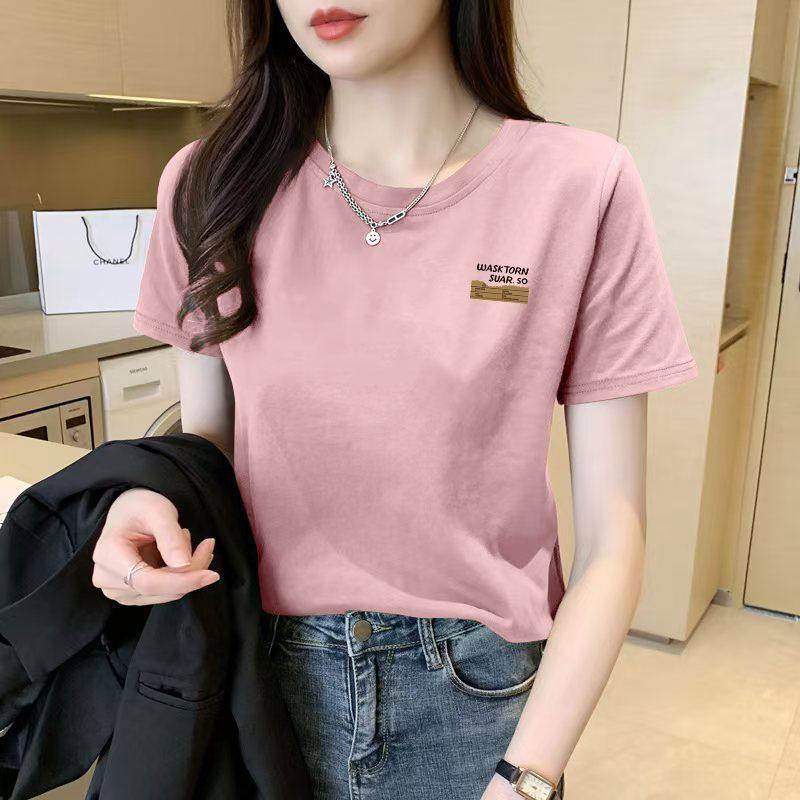 100%纯棉短袖 新款 时尚 洋气百搭宽松显瘦上衣服 休闲圆领T恤女夏季