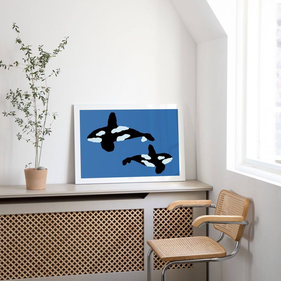 饰画 Whales鲸鱼创意卧室挂画简约北欧风壁画 Tail装 韩系Warmgrey