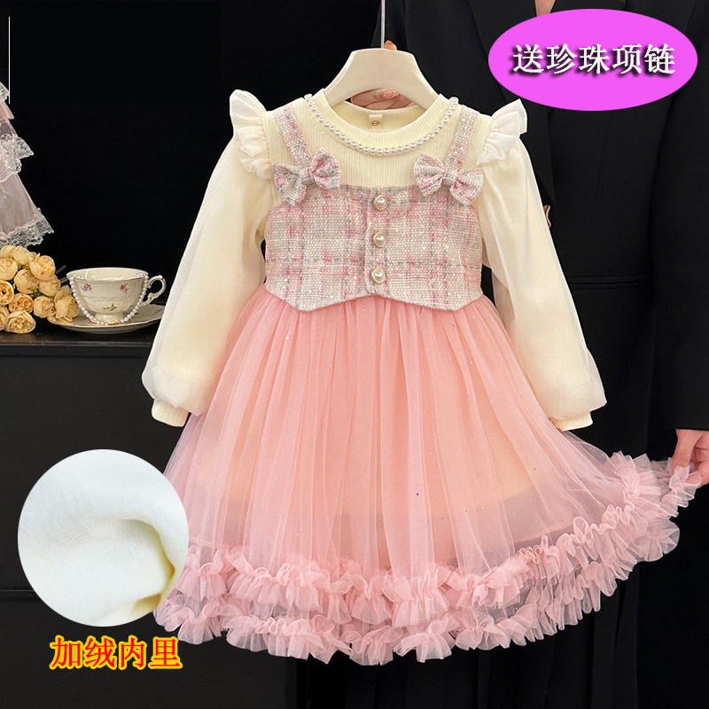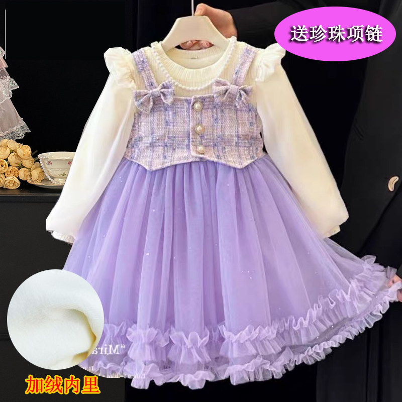 3女童公主裙秋冬加绒新款 洋气格子假两件套连衣裙 蛋糕裙春秋2童装
