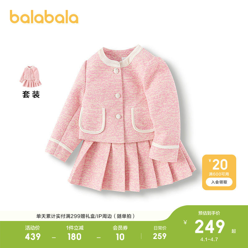 巴拉巴拉童装 女童款 春秋装 小香风百褶上下两件套时髦洋气 儿童套装由