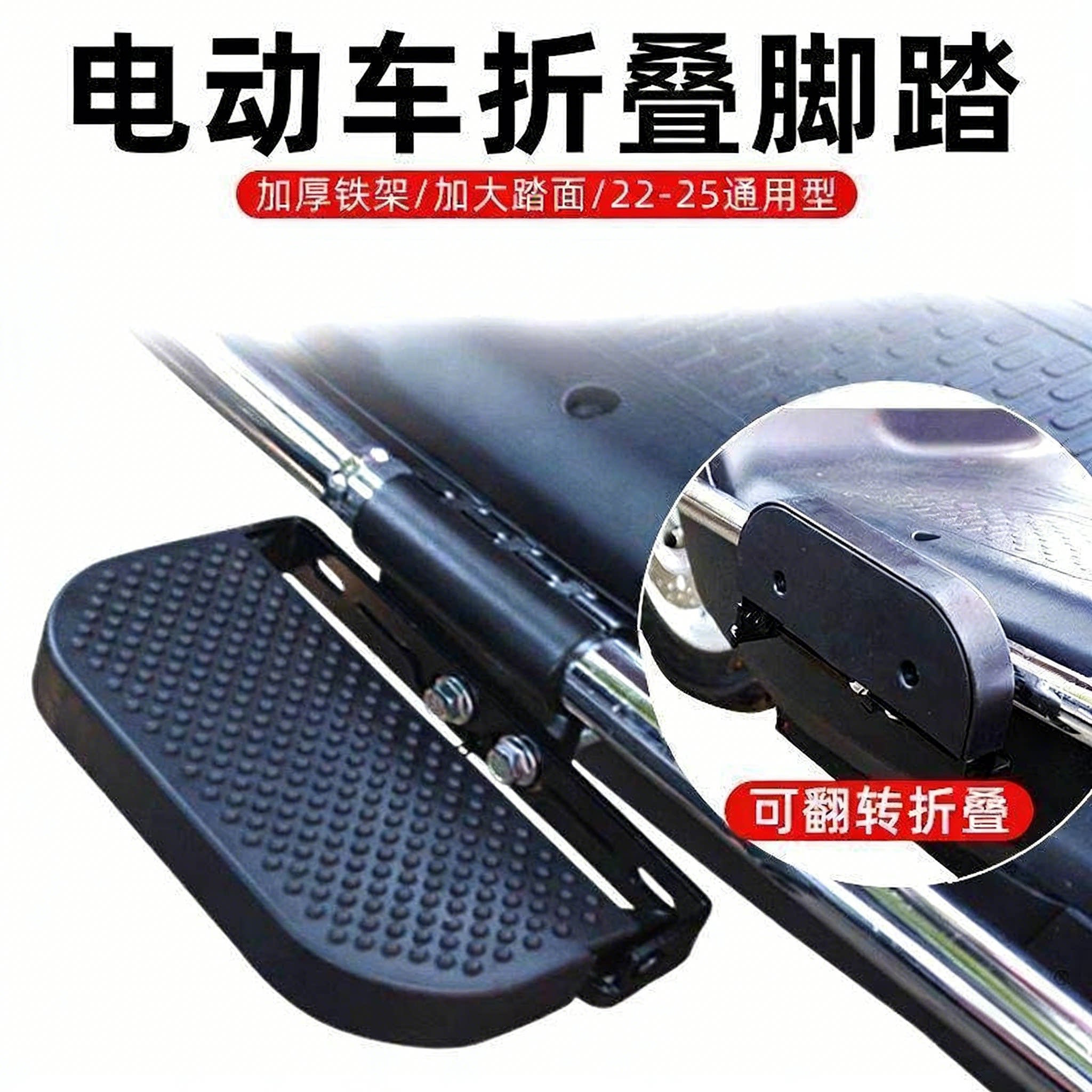 护杠脚踏板加宽防滑摩托车改装 免打孔 配件折叠脚蹬外卖电动车加装