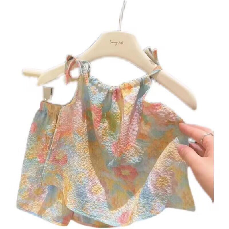 套装 夏季 新款 晕染油画风女童夏季 网红女宝宝两件套潮 洋气吊带裙裤
