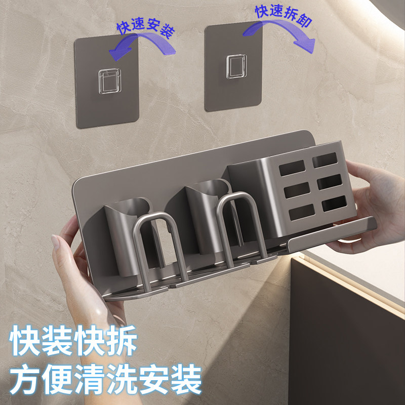 牙膏电动牙刷架 牙刷置物架免打孔卫生间牙杯漱口杯收纳家用壁挂式