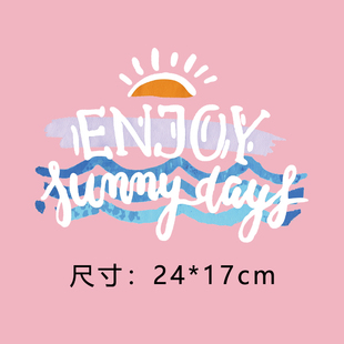 过粉胶印T恤卫衣辅料印花烫画 海浪太阳字母图案热转印衣服贴柯式由