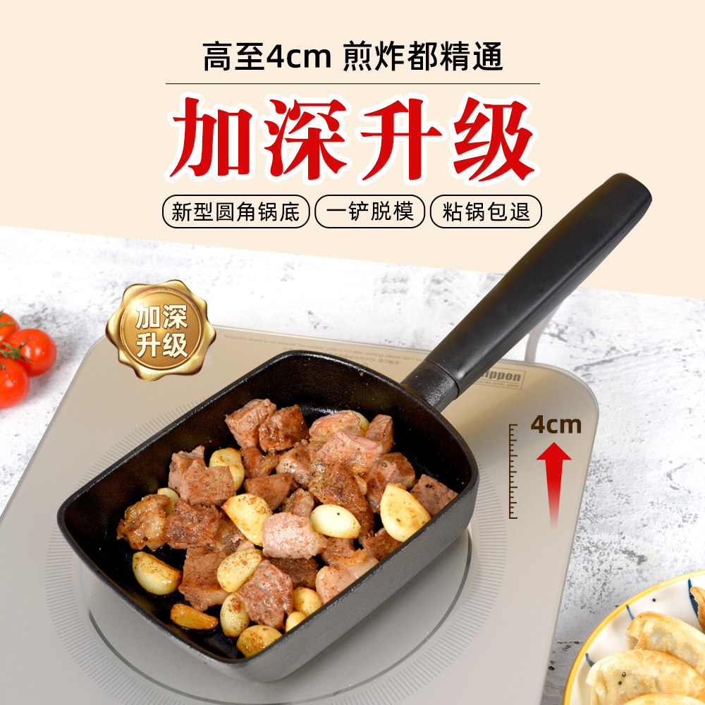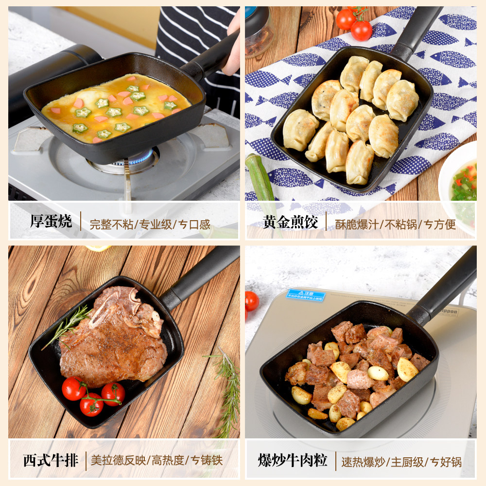 为您提供商品长方形煎锅家用不粘锅无涂层小号煎蛋平底锅 九铸铁锅玉子烧锅日式的详细介绍,