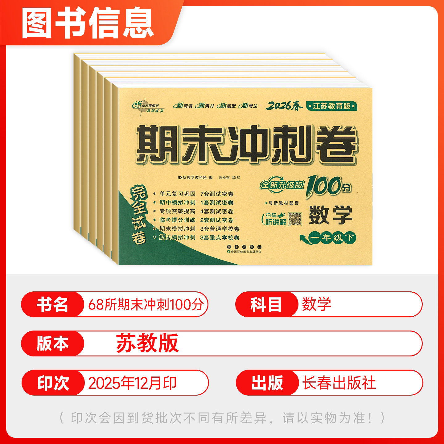为您提供商品同步训练测试卷 苏教版 数学期末冲刺100分一年级二年级三年级四五六上册下册试卷语文英语人教版 外研版 学习资料 小学课堂练习册单元的详细介绍,