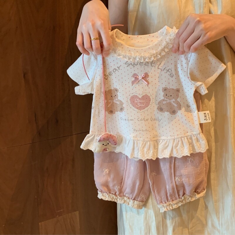 为您提供商品女童洋气套装 中小童宝宝蕾丝卡通短袖 防蚊裤 子两件套 夏天2026新款的详细介绍,