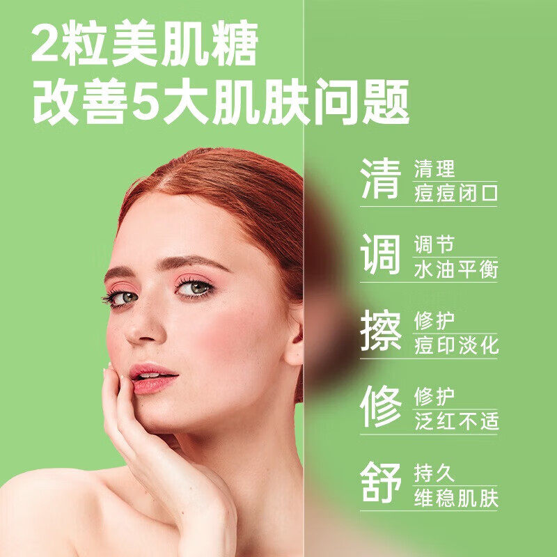 OLLY肌肤去瑕软糖50粒亮肤痘痘肌痘印闭口维生素AE生物素白淡化由
