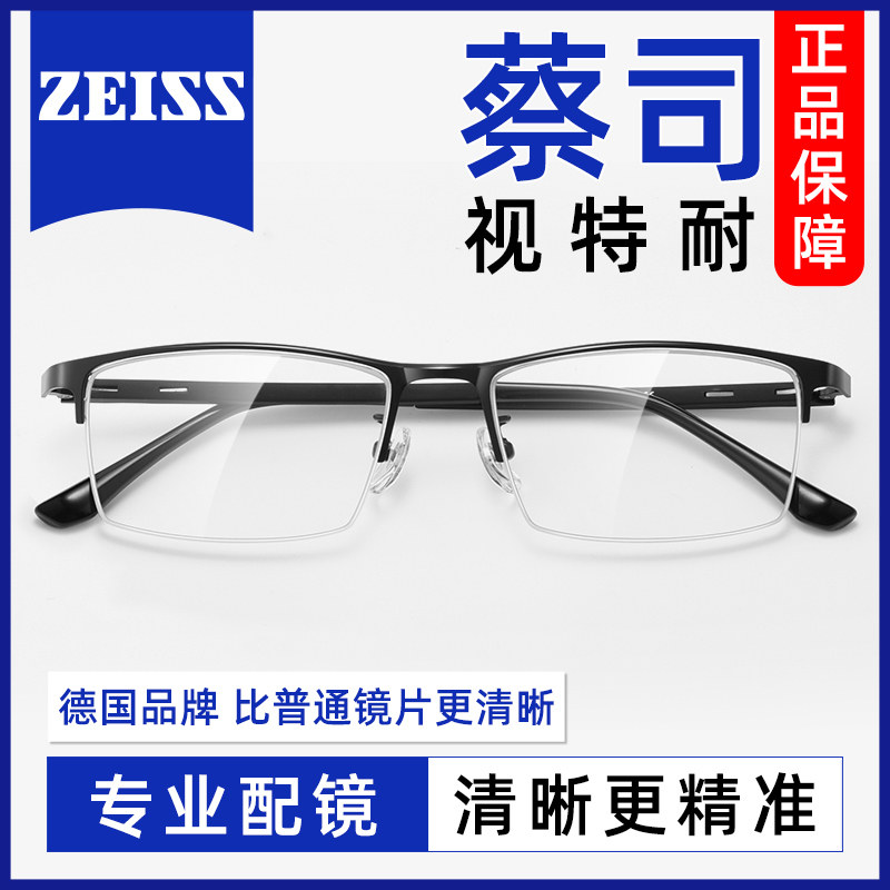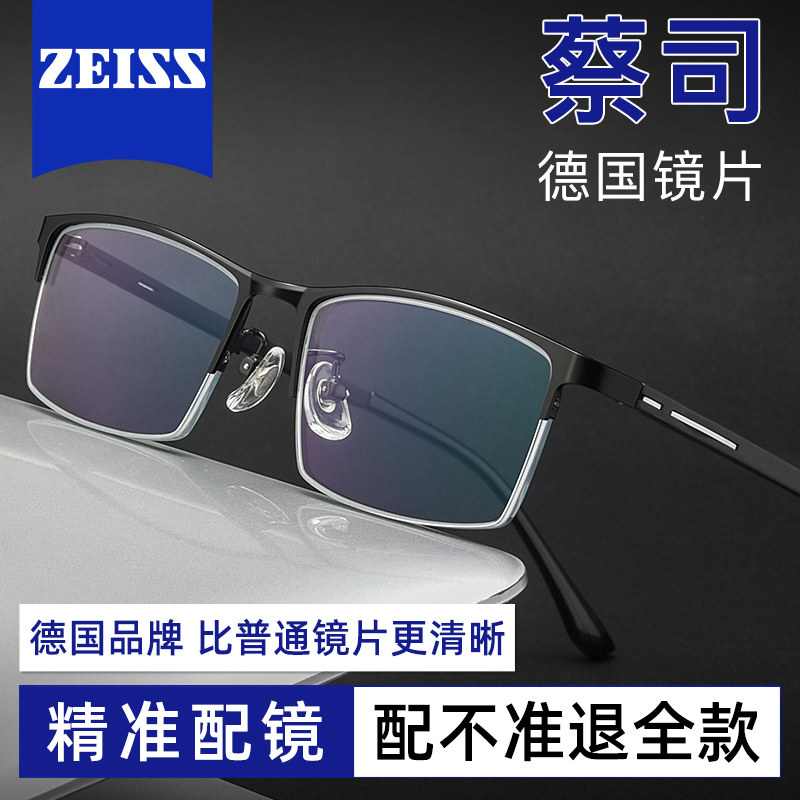 防蓝光可配度数散光变色丹阳眼镜工厂店 蔡司商务半框近视眼镜男款由