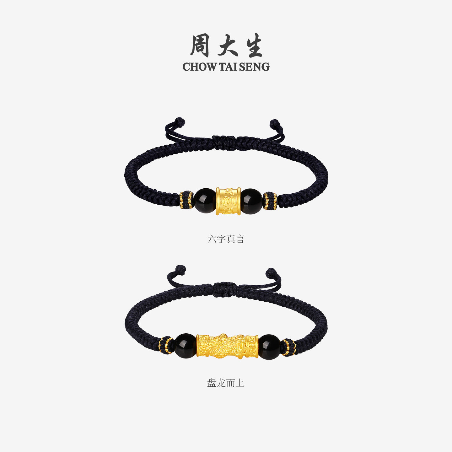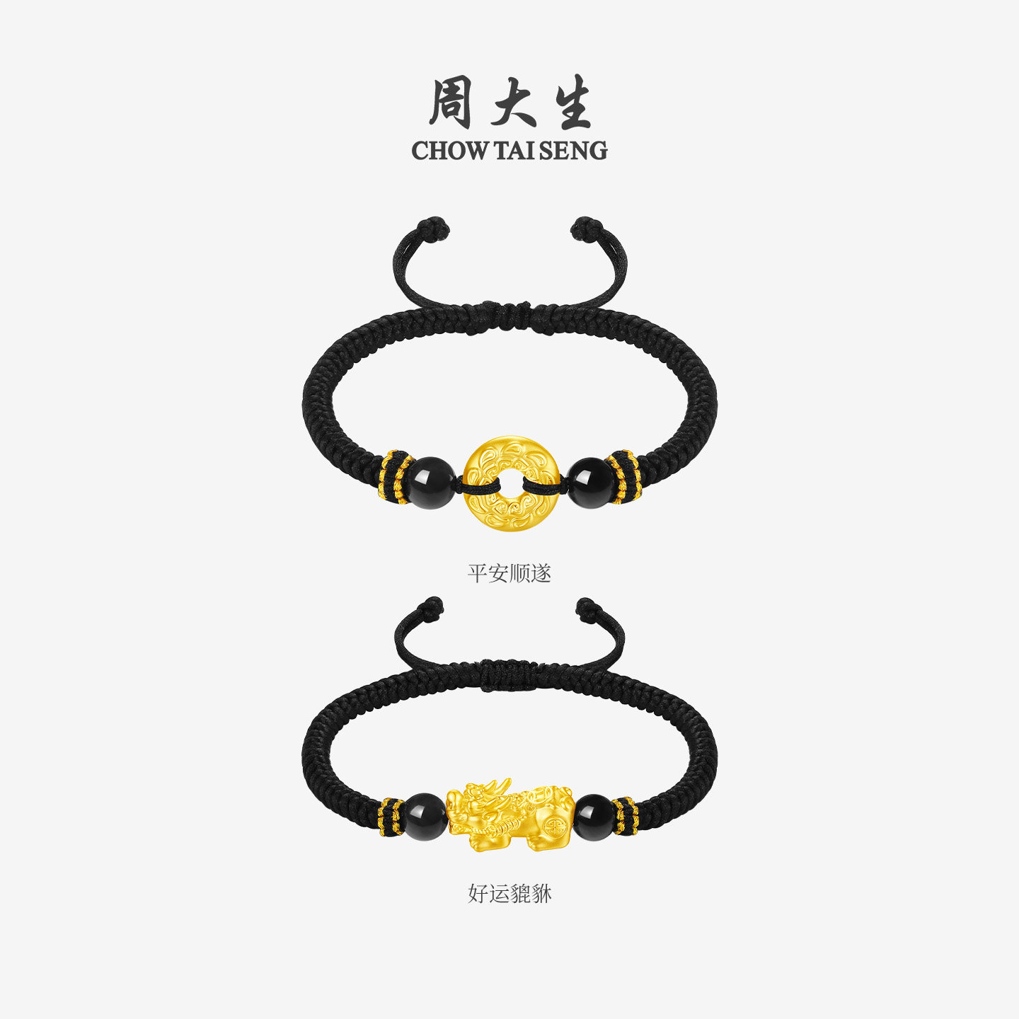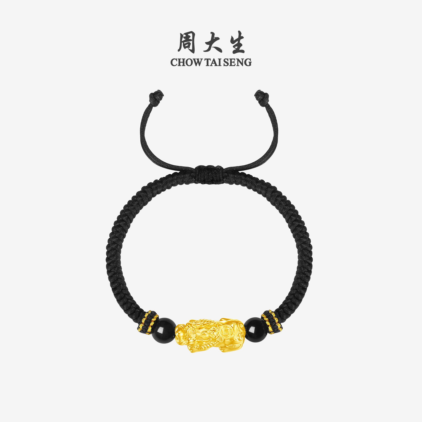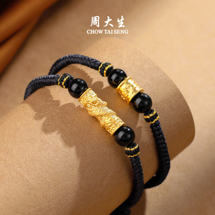 周大生黄金手链足金硬金铜钱貔貅转运珠手绳黑绳送男朋友生日礼物