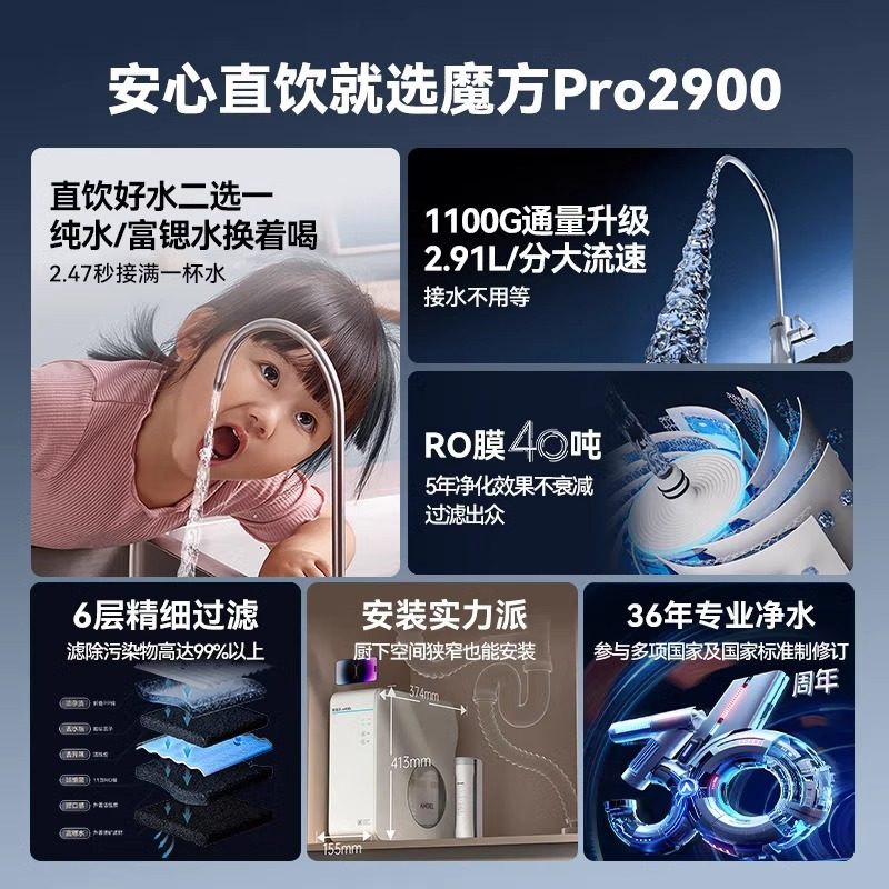 ⭐小红书推荐⭐安吉尔品牌净水器1100G家用厨房ro反渗透过滤直饮水机魔方Pro2900,所属净水器分类,由淘宝网挑选推荐!小红书抖音网红同款!哪里有卖安吉尔品牌净水器1100G家用厨房ro反渗透过滤直饮水机魔方Pro2900和多少钱质量怎么样✅。